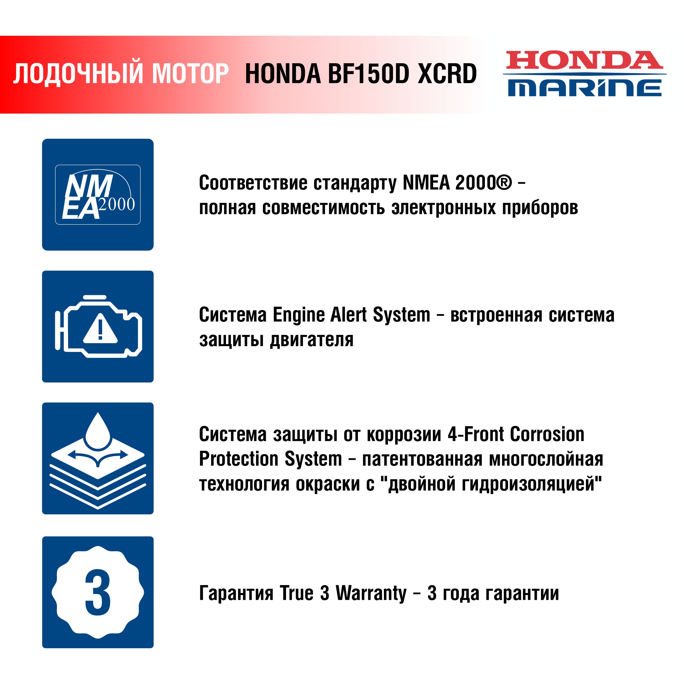 Была проведена работа по повышению коррозийнойДля моделей: Honda BF115 J LDU, Honda BF150 D XRD, Honda BF150 D XCRD, Honda BF200 D XDU (DBW), Honda BF200 D XСDU (DBW)
